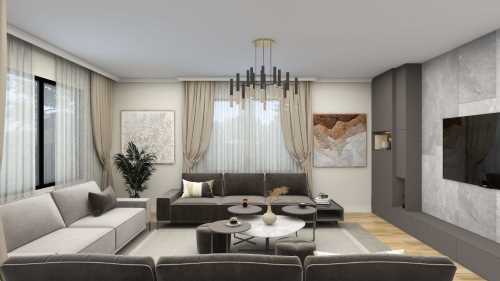Yeni bir sitede bulunan bu dairede modern tarzı benimseyen bir müşteri için, iç mimari tasarım ve uygulama aşamalarını içeren anahtar teslim hizmet sunulmuştur.